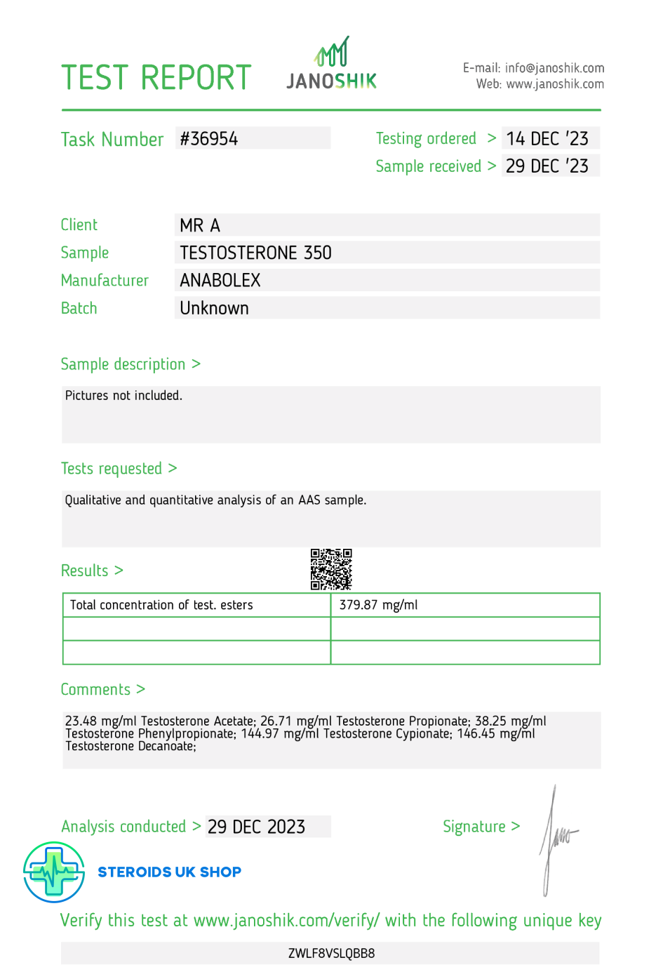 Testosterone is a combination of the most popular testosterone forms known in the market. It contains 20 mg/ml of testosterone acetate, 25 mg/ml of testosterone propionate, 35 mg/ml of testosterone phenylpropionate, 135 mg/ml of testosterone cypionate, and 135 mg/ml of testosterone decanoate. Such a mixture is made after studies to grant rapid energy and enhancement in performance to athletes and bodybuilders, allowing them to reach their goals.